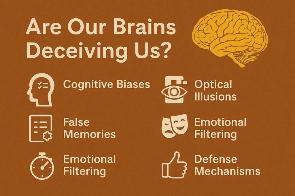 Yes, our brains sometimes trick us, not on purpose, but because of the way they work to interpret reality efficiently and quickly. These “tricks” are often the result of mental mechanisms meant to simplify cognitive processing or protect us psychologically. Here are some of the ways our brain can trick us: